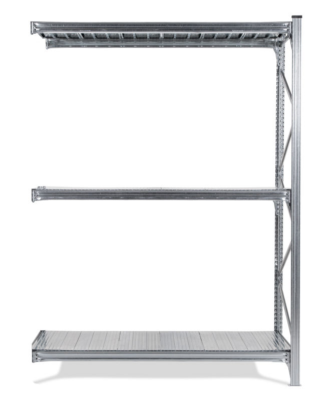 Varastohylly Maxi, utbyggnadssektion LxSxK 1820x1200x2500 mm, galvanoidut hyllytasot. Varastohylly Maxi on joustava hyllyjärjestelm, joka on valmistettu galvanoidusta teräksesti. Hylly sopii hyvin tilaa vieville tavaroille. Alhainen omapaino - suuri kuormitus 450-500 kg/hyllytaso. 4 eri syvyyttä, 600 – 1200 mm. Siirrettävät palkit, jotka voi asettaa 33 mm:n välein. Hyllytasot ovat valmistettu galvanoidusta teräksestä. Helppo koota (ei pultteja tai muttereita). Voidaan käyttää molemmilta puolilta, ei tarvita ristikkoa. Päädyt toimitetaan koottuna, kantopalkit ja metallijalat sisältyvät jokaiseen yksikköön. Korkeus 2000 / 2500 mm.