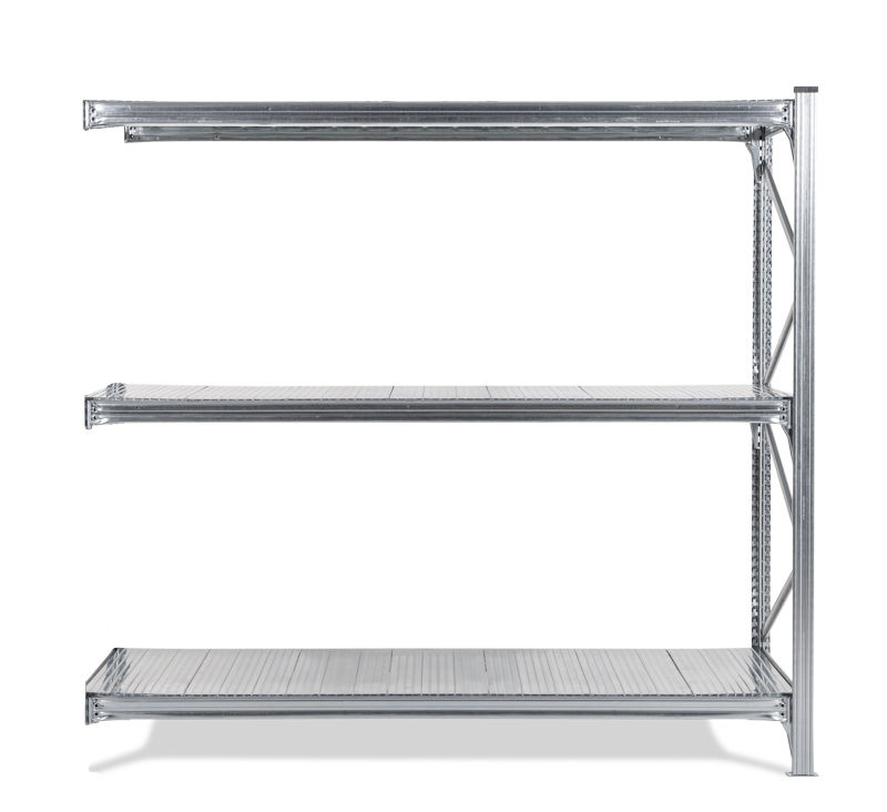 Varastohylly Maxi, utbyggnadssektion LxSxK 2120x1200x2000 mm, galvanoidut hyllytasot. Varastohylly Maxi on joustava hyllyjärjestelm, joka on valmistettu galvanoidusta teräksesti. Hylly sopii hyvin tilaa vieville tavaroille. Alhainen omapaino - suuri kuormitus 450-500 kg/hyllytaso. 4 eri syvyyttä, 600 – 1200 mm. Siirrettävät palkit, jotka voi asettaa 33 mm:n välein. Hyllytasot ovat valmistettu galvanoidusta teräksestä. Helppo koota (ei pultteja tai muttereita). Voidaan käyttää molemmilta puolilta, ei tarvita ristikkoa. Päädyt toimitetaan koottuna, kantopalkit ja metallijalat sisältyvät jokaiseen yksikköön. Korkeus 2000 / 2500 mm.