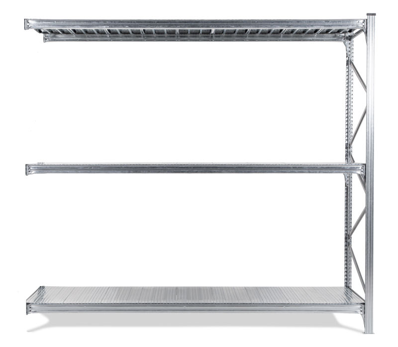 Varastohylly Maxi, utbyggnadssektion LxSxK 2720x1000x2500 mm, galvanoidut hyllytasot. Varastohylly Maxi on joustava hyllyjärjestelm, joka on valmistettu galvanoidusta teräksesti. Hylly sopii hyvin tilaa vieville tavaroille. Alhainen omapaino - suuri kuormitus 450-500 kg/hyllytaso. 4 eri syvyyttä, 600 – 1200 mm. Siirrettävät palkit, jotka voi asettaa 33 mm:n välein. Hyllytasot ovat valmistettu galvanoidusta teräksestä. Helppo koota (ei pultteja tai muttereita). Voidaan käyttää molemmilta puolilta, ei tarvita ristikkoa. Päädyt toimitetaan koottuna, kantopalkit ja metallijalat sisältyvät jokaiseen yksikköön. Korkeus 2000 / 2500 mm.