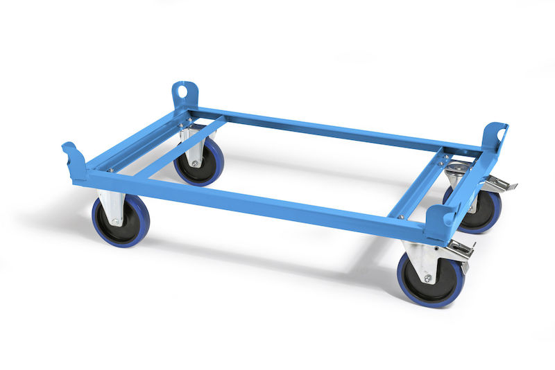 Kuormalavavaunu Konrad, 1000 x 800 mm:n lavoille, kantavuus 1000 kg, kuormatason korkeus 280 mm, sininen, alkaen 10 kpl. Lavoille ja säiliöille. Tukeva teräsrakenne. Laadukas jauhemaalaus, vakiona vaaleansininen RAL 5012.