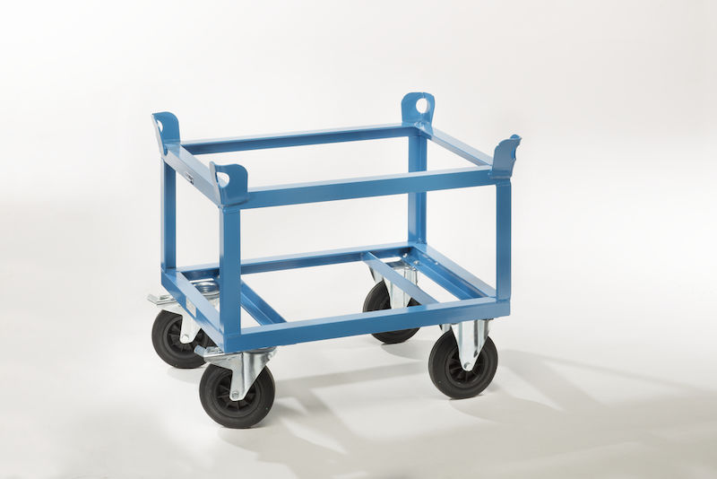 Kuormalavavaunu Konrad, puolilavoille, kantavuus 500 kg, kuormatason korkeus 650 mm, sininen, alkaen 5 kpl. Lavoille ja säiliöille. Tukeva teräsrakenne. Laadukas jauhemaalaus, vakiona vaaleansininen RAL 5012.