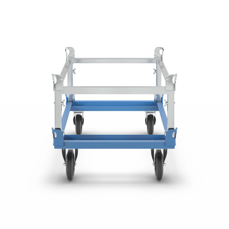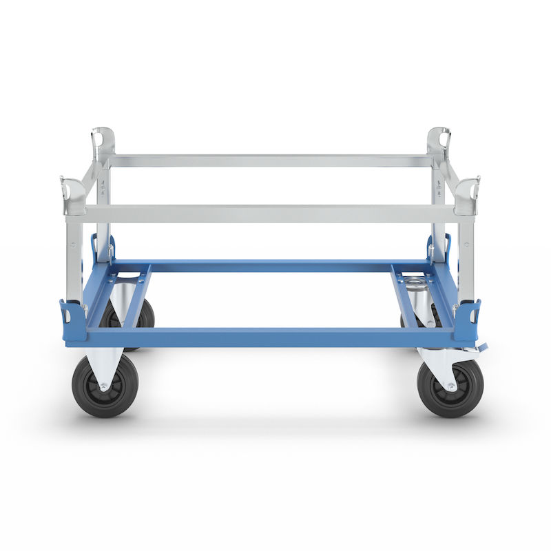 Kuormalavavaunu Lily. Korkeussäädettävä päälle asetettava kehys mahdollistaa kuormakorkeuden säädön 25 mm:n välein, ja se on myös jälkiasennettavissa.