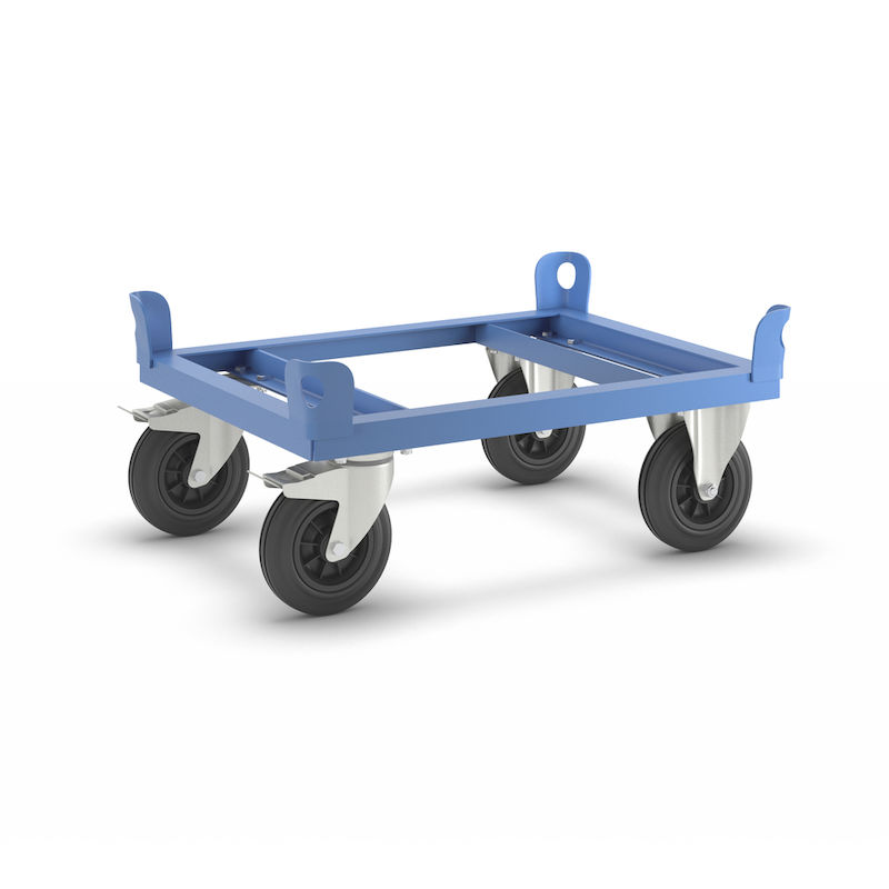 Kuormalavavaunu Konrad, puolilavoille, kantavuus 500 kg, kuormatason korkeus 280 mm, sininen. Lavoille ja säiliöille. Tukeva teräsrakenne. Laadukas jauhemaalaus, vakiona vaaleansininen RAL 5012.