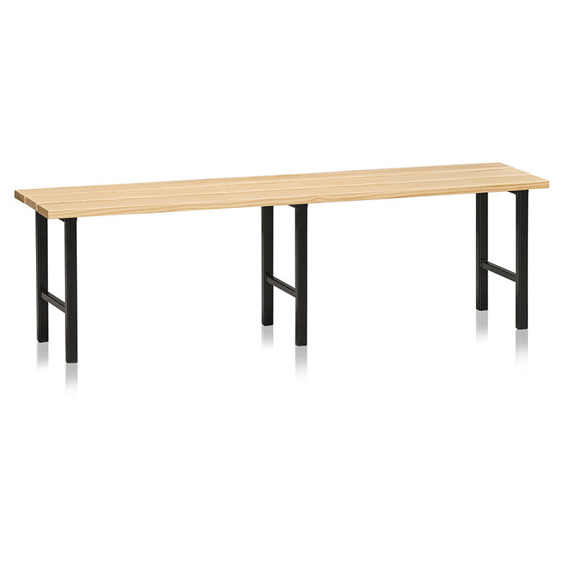 Vapaasti seisova penkki Sege pukuhuoneeseen. Sopii esimerkiksi voimistelusaleihin, urheiluhalleihin, henkilöstötiloihin j.n.e. Maalattu teräsprofiilirunko, istuinosat lakattua honkaa tai kestävää korkeapainelaminaattia. Penkit toimitetaan osina.