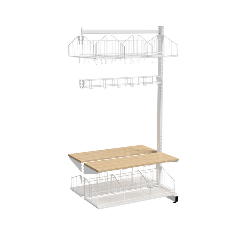 Vaateteline Savalen, kaksipuolinen, L900 mm, valkoinen, malli A, jatko-osa. Käytännöllinen vaateteline erilaisilla lisävarustevaihtoehdoilla. Luo omanlaisesi ratkaisu perus- ja jatko-osilla. Lisävarusteet ovat siirrettävissä 25 mm välein. Lattiatelineessä on säädettävät jalat. Malli A: Kenkähylly tippa-astialla, istuinpenkki, koukkulista ja hattuhylly (lankahylly).