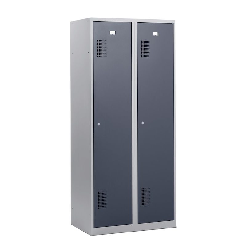 Pukukaappi Amsterdam, 2 osiota, vaaleanharmaa/basaltinharmaa, leveys 800 mm, sylinterilukko. Vaaleanharmaalla rungolla varustettu tukeva vaatekaappi on ihanteellinen säilytysratkaisu, joka takaa järjestyksen ja turvallisuuden.
