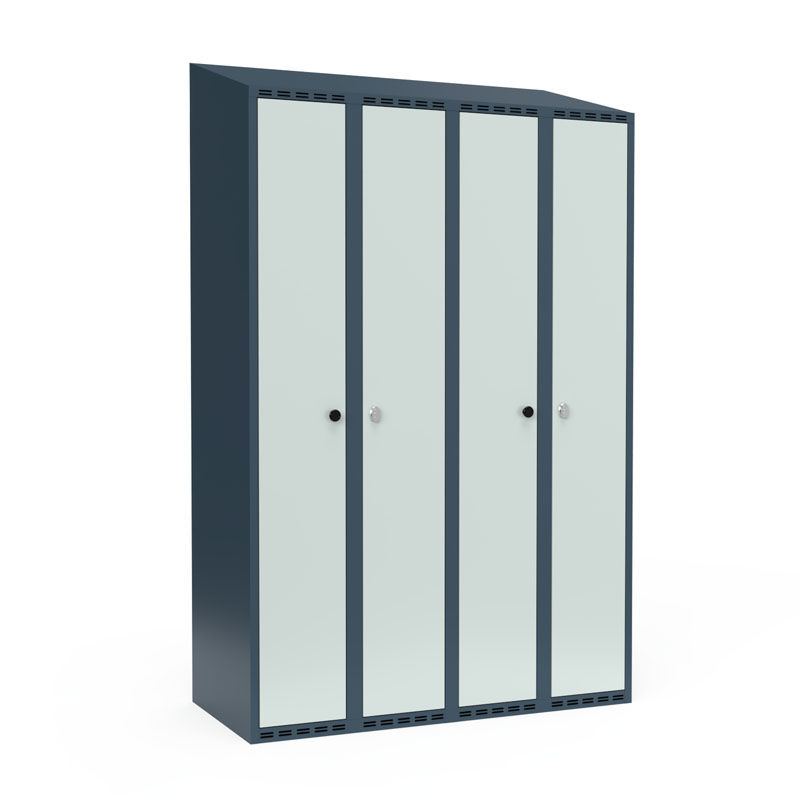 Pukukaappi Fydor SMC pariovilla, 2 paikkaa 300+300 mm, vinokatto, vaaleanharmaa/harmaa. Fydor-sarjan pukukaapit ovat korkealaatuisia ja turvallisia täyshitsattuja vaatekaappeja, joilla saat pukuhuoneet kalustettua toimivasti ja klassisesti. Saat pukuhuoneeseen modernin twistin, kun valitset pukukaapin haluamallasi värillä.Pukukaappi Fydor on hinta-laatusuhteeltaan loistava. Valitse pukuhuoneesi mittoihin sopiva koko. Fydor pukukaapit ovat valmistettu ajatuksella ”käytännöllinen, toimiva ja kestävä”. Ne ovat käytännölliset ja suunniteltu sopimaan useimpiin eri ympäristöihin: niin toimiston pukuhuoneeseen kuin sosiaalitilaan sekä varaston ja teollisuuden pukuhuoneisiin.Pukukaapin runko on täyshitsattu. Pohja on tasainen ja helppo siivota. Sivuilla reiät ilmanvaihtoa varten, samoin oven ylä- ja alaosassa. Vaatteet eivät mene tunkkaisiksi pukukaapissa, kun ilma vaihtuu rei’istä. Ovissa on tuplapelti-vahvikkeet, kumivaimentimet ja hitsattu ovistopperi, joka estää ovien paiskaantumisen toisiinsa.Fydor-sarjan pukukaapit toimitetaan valmiiksi kasattuna, valituilla lukoilla. Pukukaappi on helppo suoraan käyttöön! Vakiona haka omaa riippulukkoa varten. Lisätilauksesta saatavilla myös sylinterilukko tai koodilukko. Voit valita pukukaappiin erilaiset jalustat, nämä toimitetaan erikseen. Asennus jalustaan on helppo, kaappi nostetaan jalustalle ja kiinnitetään ruuveilla.Vinokatto estää myös kaapin katon käyttämistä tavaroiden säilytykseen.Fydor pukukaapeissa on vankka vaatetanko ja tupla-ankkurikoukut jokaisessa lokerossa.Testattu: EN 14073-2:2004, EN 14073-3:2004, EN 14074:2004, EN 16121:2013, EN 16122:2045.Fydor pukukaapit ovat valittavissa useassa eri koossa, mallissa ja värissä eri ovimäärillä, Z-ovilla, erilaisilla lukoilla, jalustoilla ja lisävarusteilla! Jos et löydä normaalista valikoimastamme sopivaa pukukaappia, ota yhteyttä myyntiimme, niin katsomme sinulle erikoisratkaisun.Ruotsalaisen Möbelfaktan ja Sundahusin laatu- ja ympäristöhyväksymä.