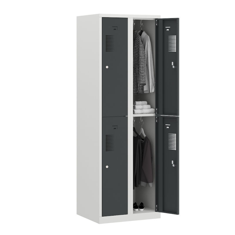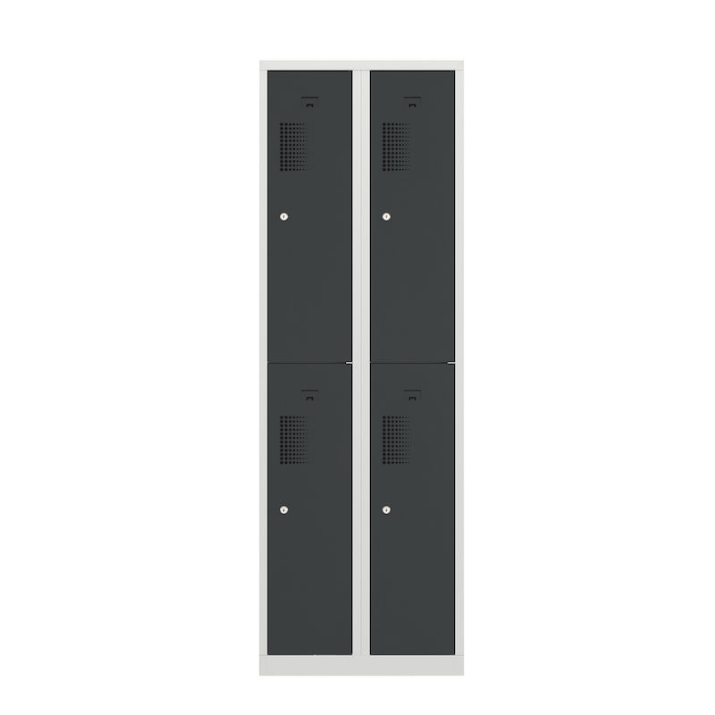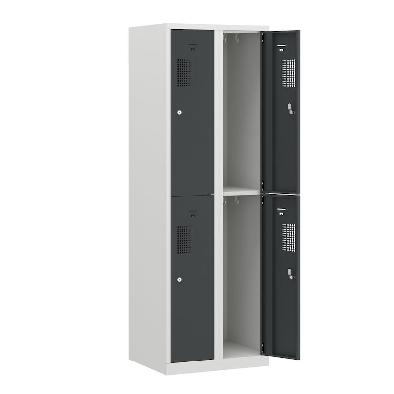 Pukukaappi, puolikorkeat osiot Amsterdam, 2 osiota, leveys 600 mm, 4 lokeroa, vaaleanharmaa/basaltinharmaa.