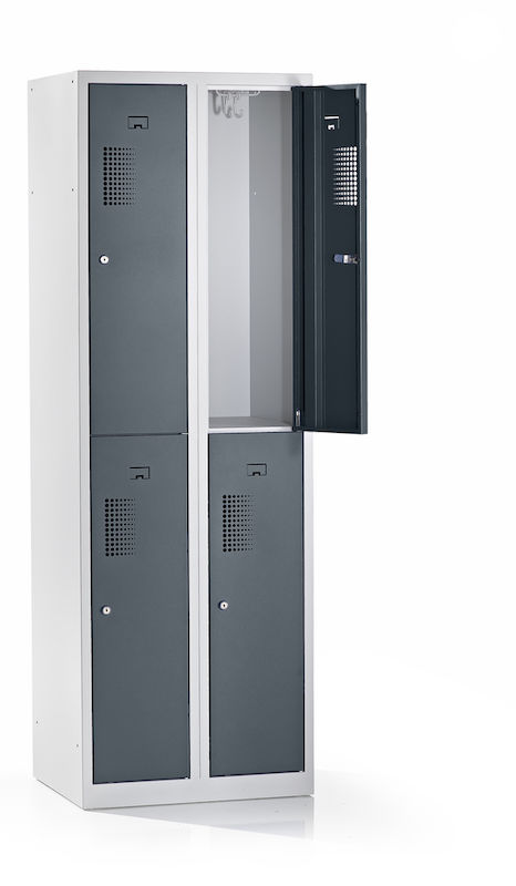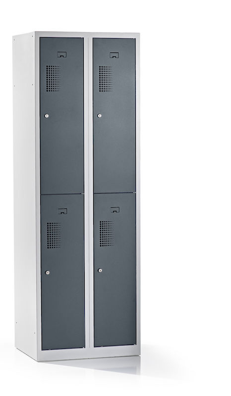 Lokerokaapin kestävä rakenne perustuu jauhemaalattuun teräsrunkoon, joka kestää erittäin hyvin naarmuja ja korroosiota. Päällekkäin sijoitetut lokerot säästävät tilaa ja sopivat erinomaisesti työpajojen, urheiluseurojen tai varastojen pukuhuoneisiin. Integroitu rei’itys takaa optimaalisen ilmanvaihdon.