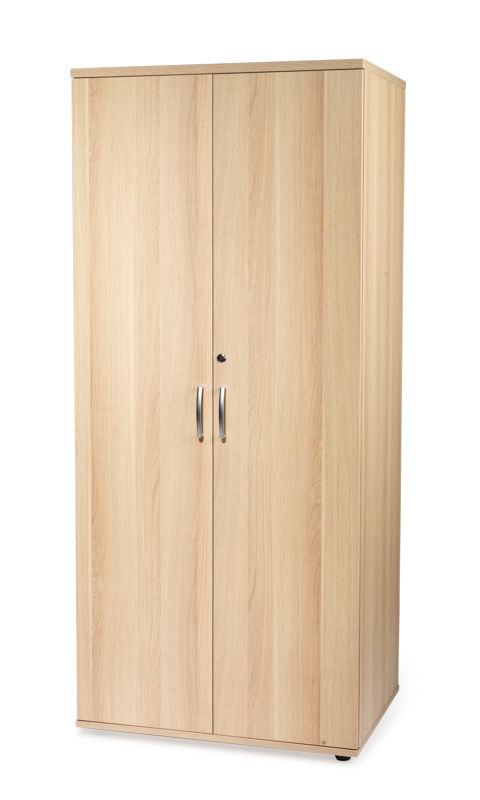 Vaatekaappi Unden, valmiiksi koottu, LxSxK 800x420x1845 mm, tammilaminaatti. Helppo ja käytännöllinen vaatekomero. Valmistetaan pyökki-, koivu-, tammi- tai valkoinen laminaattilevystä, paksuus 18 mm. Toimitetaan tasolla ja vaatetangolla. Ovissa sylinterilukot, kahdella avaimella. Säädettävät jalat. Toimitetaan koottuna. Sisustus: Vasen puoli säädettävillä hyllytasoilla, kiinteä hattuhylly vaatetangolla.