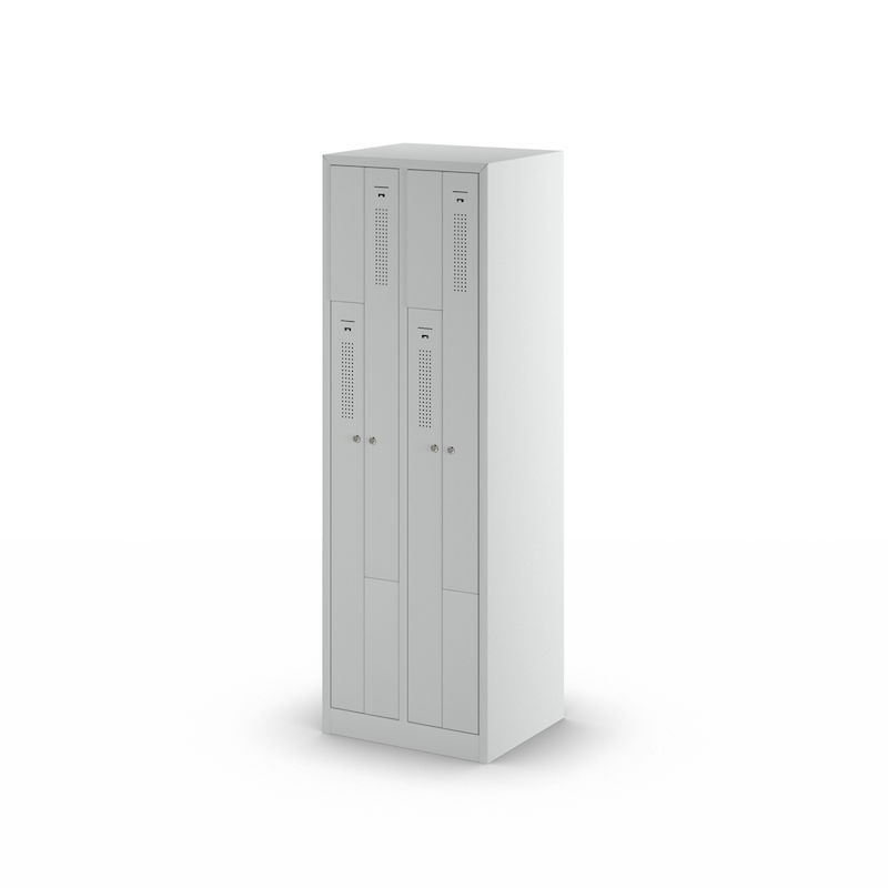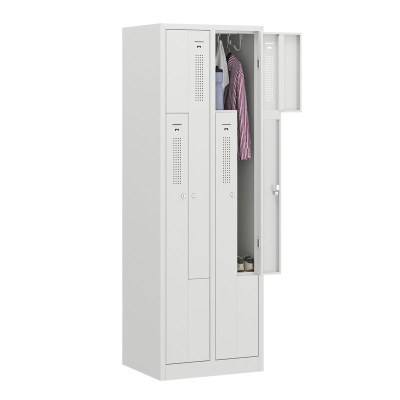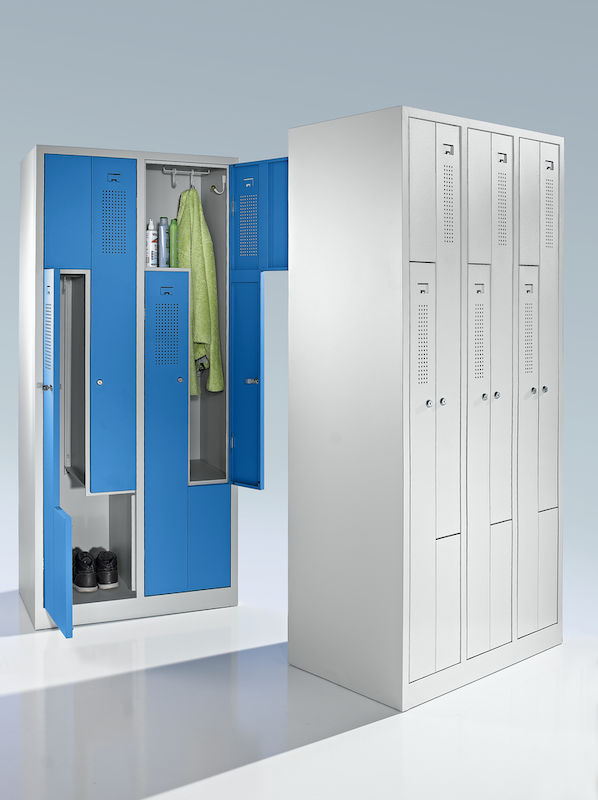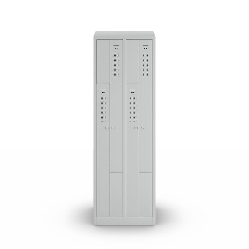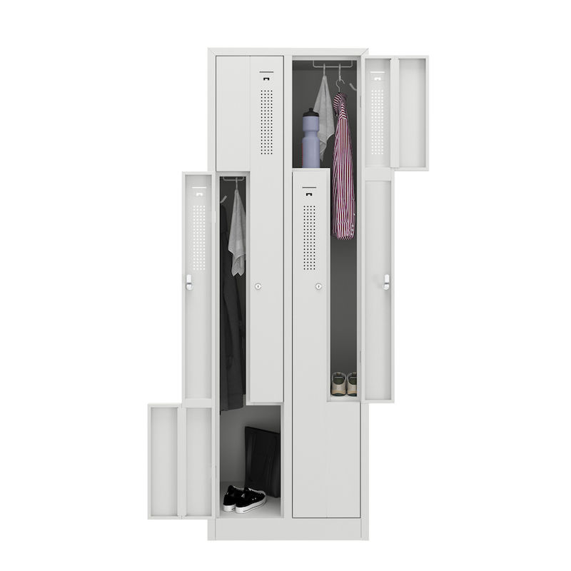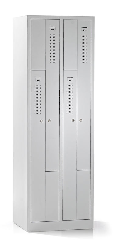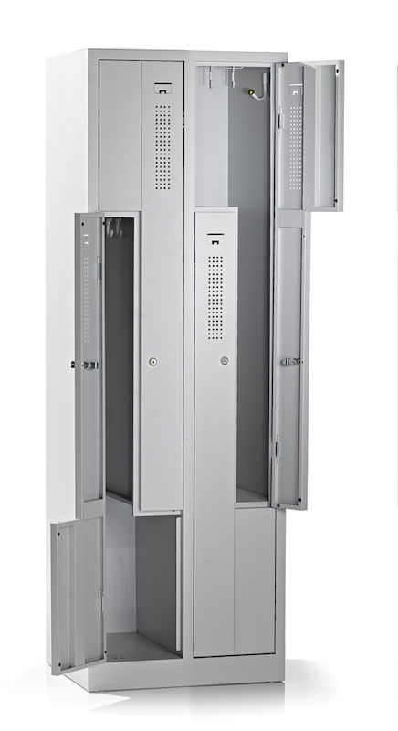 Z-kaapissa yhdistyvät tilaa säästävä muotoilu ja harkittu toimivuus. Tämä teräskaappi sopii erinomaisesti yritysten ja liikuntatilojen pukuhuoneisiin, ja siinä kaksi vaatekaappilokeroa vie vain yhden kaapin tilan. Fiksu Z:n muotoinen lokerosijoittelu mahdollistaa vaatteiden tehokkaan säilytyksen käyttömukavuudesta tinkimättä.
