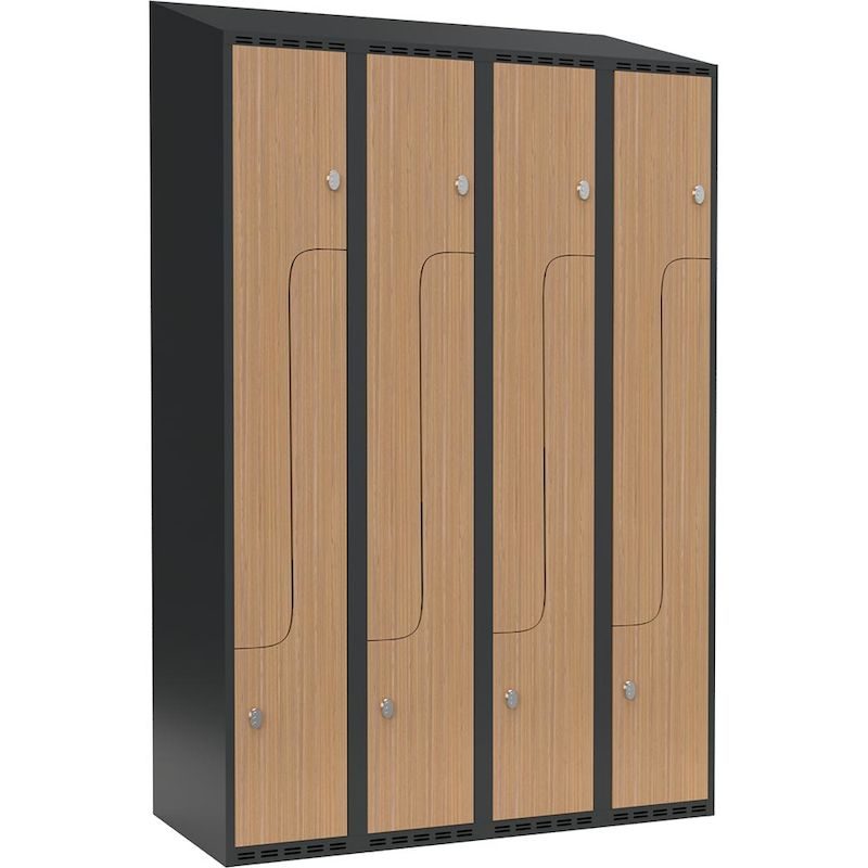 Z-kaappi Fydor SMZ, LxSxK 1200x550x1900 mm, 8 ovea 4 kaapissa, vinokatto, ant/tammi. Fydor-sarjan pukukaapit ovat korkealaatuisia ja turvallisia kokohitsattuja vaatekaappeja, jolla saat pukuhuoneet kalustettua toimivasti ja klassisesti. Saat pukuhuoneeseen modernin twistin, kun valitset pukukaapin haluamallasi värillä.Pukukaappi Fydor on hinta-laatusuhteeltaan loistava. Valitse sinun pukuhuoneeseesi sopivat pukukaapit eri kokojen mukaan. Fydor pukukaapit on valmistettu ajatuksella ”käytännöllinen, toimiva ja kestävä”. Ne ovat käytännölliset ja suunniteltu sopimaan useimpiin eri ympäristöihin: niin toimiston pukuhuoneeseen tai sosiaalihuoneeseen, kuin myös varaston ja teollisuuden pukuhuoneisiin.Pukukaapin runko on täyshitsattu. Pohja on tasainen ja helppo siivota. Sivuilla reiät ilmanvaihtoa varten, samoin oven ylä- ja alaosassa. Vaatteet eivät mene tunkkaisiksi pukukaapissa, kun ilma vaihtuu reistä. Ovissa on tuplapelti-vahvikkeet, kumivaimentimet ja hitsattu ovistopperi, joka estää ovien paiskomisen toisiinsa.Fydor-sarjan pukukaapit toimitetaan valmiiksi kasattuna, valituilla lukoilla. Pukukaappi on helppo suoraan käyttöön! Vakiona haka omaa riippulukko varten. Lisätilauksesta saatavilla myös sylinterilukko tai koodilukko. Voit valita pukukaappiin erilaiset jalustat, nämä toimitetaan erikseen. Asennus jalustaan on helppo, kaappi nostetaan jalustan päälle ja kiinnitetään ruuveilla.Tilan ollessa rajattu ovat Z-kaapit luonteva ratkaisu. Z-kaapit ovat tarpeeksi korkeita takkien ja muiden vaatteiden ripustamiseen ja samanaikaisesti niissä on tarpeeksi tilaa esimerkiksi kengille ja laukuille tai vastaavalle tavaralle.Tasakatto on loistava valinta, jos haluat hyödyntää vielä kaapin kattoa säilytyksessä. Toisena vaihtoehtona on vinokatto. Vinokatolla voi esimerkiksi estää tavaroiden säilytyksen pukukaapin päällä.Fydor pukukaappien sisällä on vahva vaatetanko ja tupla-ankkurit/-koukut jokaisen oven takana.Testattu: EN 14073-2:2004, EN 14073-3:2004, EN 14074:2004, EN 16121:2013, EN 16122:2045.Fydor pukukaapit ovat valittavissa useassa eri koossa, mallissa ja värissä eri ovimäärillä, Z-ovilla, erilaisilla lukoilla, jalustoilla ja lisävarusteilla! Jos et löydä normaalista valikoimastamme sopivaa pukukaappia, ota yhteyttä myyntiimme, niin katsomme sinulle erikoisratkaisun.