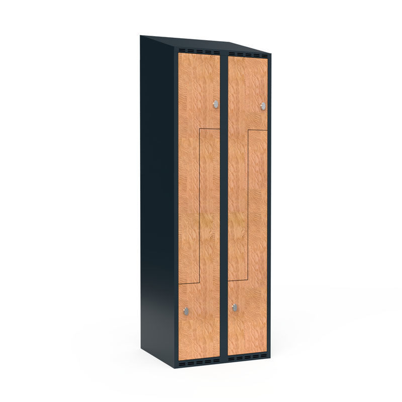 Z-kaappi Fydor SMZ, LxSxK 600x550x1900 mm, 4 ovea 2 kaapissa, vinokatto, ant/tammi. Fydor-sarjan pukukaapit ovat korkealaatuisia ja turvallisia kokohitsattuja vaatekaappeja, jolla saat pukuhuoneet kalustettua toimivasti ja klassisesti. Saat pukuhuoneeseen modernin twistin, kun valitset pukukaapin haluamallasi värillä.Pukukaappi Fydor on hinta-laatusuhteeltaan loistava. Valitse sinun pukuhuoneeseesi sopivat pukukaapit eri kokojen mukaan. Fydor pukukaapit on valmistettu ajatuksella ”käytännöllinen, toimiva ja kestävä”. Ne ovat käytännölliset ja suunniteltu sopimaan useimpiin eri ympäristöihin: niin toimiston pukuhuoneeseen tai sosiaalihuoneeseen, kuin myös varaston ja teollisuuden pukuhuoneisiin.Pukukaapin runko on täyshitsattu. Pohja on tasainen ja helppo siivota. Sivuilla reiät ilmanvaihtoa varten, samoin oven ylä- ja alaosassa. Vaatteet eivät mene tunkkaisiksi pukukaapissa, kun ilma vaihtuu reistä. Ovissa on tuplapelti-vahvikkeet, kumivaimentimet ja hitsattu ovistopperi, joka estää ovien paiskomisen toisiinsa.Fydor-sarjan pukukaapit toimitetaan valmiiksi kasattuna, valituilla lukoilla. Pukukaappi on helppo suoraan käyttöön! Vakiona haka omaa riippulukko varten. Lisätilauksesta saatavilla myös sylinterilukko tai koodilukko. Voit valita pukukaappiin erilaiset jalustat, nämä toimitetaan erikseen. Asennus jalustaan on helppo, kaappi nostetaan jalustan päälle ja kiinnitetään ruuveilla.Tilan ollessa rajattu ovat Z-kaapit luonteva ratkaisu. Z-kaapit ovat tarpeeksi korkeita takkien ja muiden vaatteiden ripustamiseen ja samanaikaisesti niissä on tarpeeksi tilaa esimerkiksi kengille ja laukuille tai vastaavalle tavaralle.Tasakatto on loistava valinta, jos haluat hyödyntää vielä kaapin kattoa säilytyksessä. Toisena vaihtoehtona on vinokatto. Vinokatolla voi esimerkiksi estää tavaroiden säilytyksen pukukaapin päällä.Fydor pukukaappien sisällä on vahva vaatetanko ja tupla-ankkurit/-koukut jokaisen oven takana.Testattu: EN 14073-2:2004, EN 14073-3:2004, EN 14074:2004, EN 16121:2013, EN 16122:2045.Fydor pukukaapit ovat valittavissa useassa eri koossa, mallissa ja värissä eri ovimäärillä, Z-ovilla, erilaisilla lukoilla, jalustoilla ja lisävarusteilla! Jos et löydä normaalista valikoimastamme sopivaa pukukaappia, ota yhteyttä myyntiimme, niin katsomme sinulle erikoisratkaisun.
