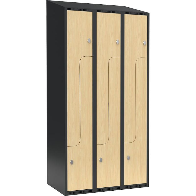 Z-kaappi Fydor SMZ, LxSxK 900x550x1900 mm, 6 ovea 3 kaapissa, vinokatto, ant/koivu. Fydor-sarjan pukukaapit ovat korkealaatuisia ja turvallisia kokohitsattuja vaatekaappeja, jolla saat pukuhuoneet kalustettua toimivasti ja klassisesti. Saat pukuhuoneeseen modernin twistin, kun valitset pukukaapin haluamallasi värillä.Pukukaappi Fydor on hinta-laatusuhteeltaan loistava. Valitse sinun pukuhuoneeseesi sopivat pukukaapit eri kokojen mukaan. Fydor pukukaapit on valmistettu ajatuksella ”käytännöllinen, toimiva ja kestävä”. Ne ovat käytännölliset ja suunniteltu sopimaan useimpiin eri ympäristöihin: niin toimiston pukuhuoneeseen tai sosiaalihuoneeseen, kuin myös varaston ja teollisuuden pukuhuoneisiin.Pukukaapin runko on täyshitsattu. Pohja on tasainen ja helppo siivota. Sivuilla reiät ilmanvaihtoa varten, samoin oven ylä- ja alaosassa. Vaatteet eivät mene tunkkaisiksi pukukaapissa, kun ilma vaihtuu reistä. Ovissa on tuplapelti-vahvikkeet, kumivaimentimet ja hitsattu ovistopperi, joka estää ovien paiskomisen toisiinsa.Fydor-sarjan pukukaapit toimitetaan valmiiksi kasattuna, valituilla lukoilla. Pukukaappi on helppo suoraan käyttöön! Vakiona haka omaa riippulukko varten. Lisätilauksesta saatavilla myös sylinterilukko tai koodilukko. Voit valita pukukaappiin erilaiset jalustat, nämä toimitetaan erikseen. Asennus jalustaan on helppo, kaappi nostetaan jalustan päälle ja kiinnitetään ruuveilla.Tilan ollessa rajattu ovat Z-kaapit luonteva ratkaisu. Z-kaapit ovat tarpeeksi korkeita takkien ja muiden vaatteiden ripustamiseen ja samanaikaisesti niissä on tarpeeksi tilaa esimerkiksi kengille ja laukuille tai vastaavalle tavaralle.Tasakatto on loistava valinta, jos haluat hyödyntää vielä kaapin kattoa säilytyksessä. Toisena vaihtoehtona on vinokatto. Vinokatolla voi esimerkiksi estää tavaroiden säilytyksen pukukaapin päällä.Fydor pukukaappien sisällä on vahva vaatetanko ja tupla-ankkurit/-koukut jokaisen oven takana.Testattu: EN 14073-2:2004, EN 14073-3:2004, EN 14074:2004, EN 16121:2013, EN 16122:2045.Fydor pukukaapit ovat valittavissa useassa eri koossa, mallissa ja värissä eri ovimäärillä, Z-ovilla, erilaisilla lukoilla, jalustoilla ja lisävarusteilla! Jos et löydä normaalista valikoimastamme sopivaa pukukaappia, ota yhteyttä myyntiimme, niin katsomme sinulle erikoisratkaisun.