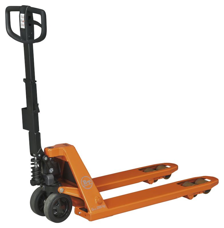 Haarukkavaunu BT Silent Lifter, vakio, haarukan pituus 1150 mm. Tavaroiden hiljaiseen käsittelyyn myymälöissä tai muissa hiljaisissa ympäristöissä. Ohjauspyörä kumia, haarukkapyörät polyuretaania ja haarukan rungon alaosa on verhoiltu ääntä vaimentavalla materiaalilla, mikä takaa hiljaisen käytön. Nostokapasiteetti 2300 kg. Haarukan pituus 1150 mm.