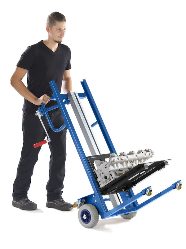 Pinoamisvaunu Lukas. Erilaisilla kuorman tuilla varustettu pinoamisvaunu moniin käyttötarkoituksiin. Kuormatason keskipiste 300 mm. Puhkeamattomat renkaat, keskusjarru, tarkka ajo ja asemointi 2 kääntöpyörän ansiosta. Nostoliike tapahtuu itsejarruttavan turvavinssin ja tarkkuusrullaketjun avulla.