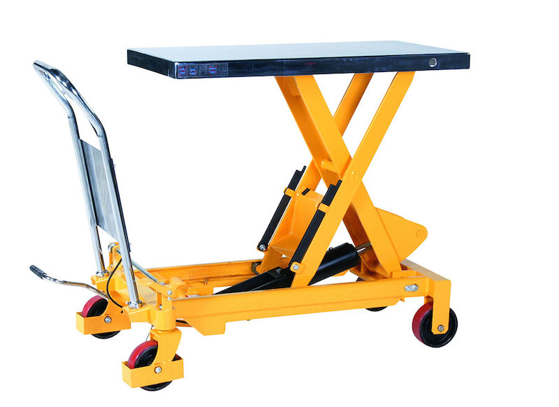 Sopii useimpiin ympäristöihin. Voidaan käyttää työtasona, pakkauspöytänä tai nostoa vaativiin siirtoihin. Hydraulisia nostopöytävaunuja nostetaan jalkapumpulla ja lasketaan kahvalla. Nopea nostotoiminto käytettävissä keveille kuormille. Kestävä, sähkösinkitty pöytälevy. Kevyesti rullaavien renkaiden kulutuspinta on polyuretaania. Kaksi kääntyvää ja kaksi kiinteää pyörää, joissa jalkasuojat.