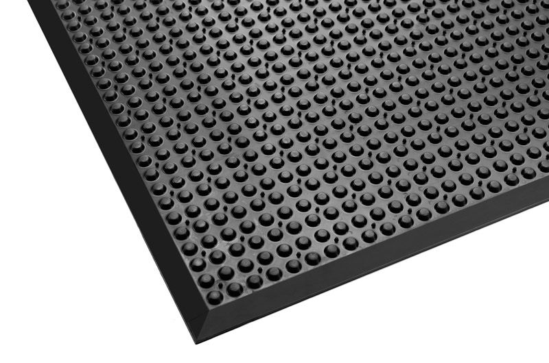 Kumimatto Senso Nitril, musta, PxL 1200 x 900 mm. Kestävä matto teollisuusympäristöihin. Kestää useimpia öljyjä ja kemikaaleja. Kestää jonkin verran roiskeitä hitsauksesta ja hionnasta. Matolla on miellyttävä seistä kuplien muodon ja nitriilikumin joustavuuden ansiosta.