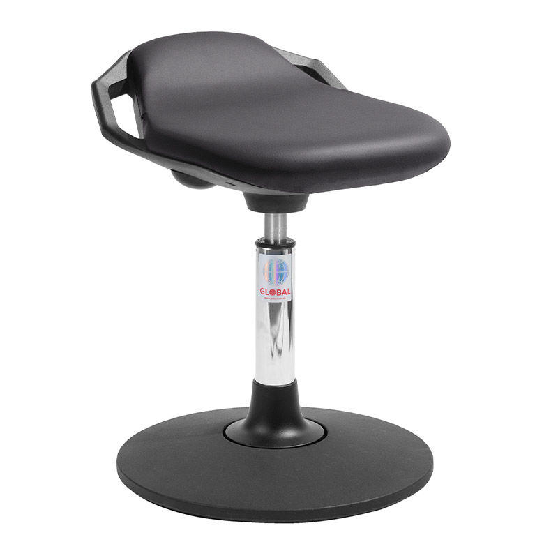 Aktiivituoli Oliver, tasapainorunko, K 420-550 mm, musta. Tällä tuolilla istut aktiivisesti! Mitä se tarkoittaa? Tuolin rungossa on liikkuva nivel (tasapainorunko), jonka avulla istut aktiivisesti. Tuolin jalusta on vakaa laatta, joka pysyy tukevasti maassa. Tässä jalustassa on kestävä varsi kiinni liikkuvassa nivelessä ja siinä itse istuinosa. Kun istut tuolilla, tasapainottelet ja istut aktiivisesti tasapainorungon (liikkuvan nivelen) ansiosta. Oma painosi jakaantuu istuessa niin, että pidät keskivartaloa rennosti aktiivisena ja jalkojen isot lihakset pääsevät huomaamattasi töihin. Aktiivituoli Oliverilla istut mukavasti ja samalla saat terveellistä liikettä, tasapinottelet ja olet aktiivinen ihan huomaamatta.