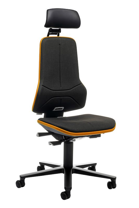 Teollisuustuoli Ela. Tämä monikäyttöinen teollisuustuoli sopii erinomaisesti näyttöpääte-, asennus- ja valvontatyöpisteisiin. Pääntuen korkeus, syvyys ja kallistus ovat säädettävissä kätevästi istuessa. Pääntuki on pehmustettu keinonahkaverhoilulla, joka on pestävissä ja helppo puhdistaa. Tuolin runsaat pehmusteet takaavat erinomaisen istuinmukavuuden, ja selkänojan ergonominen muotoilu takaa optimaalisen liikkumisvapauden. Joustonauha suojaa tuolia ja ympäristöä.