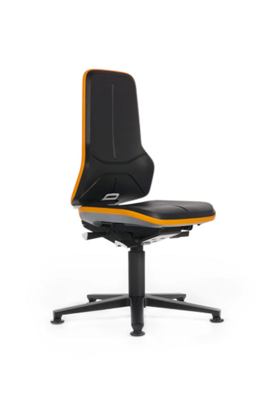 Teollisuustuoli Eldin, synkromekanismi, keinonahka, oranssi joustonauha. Istuimen ja selkänojan vaihtoehdot