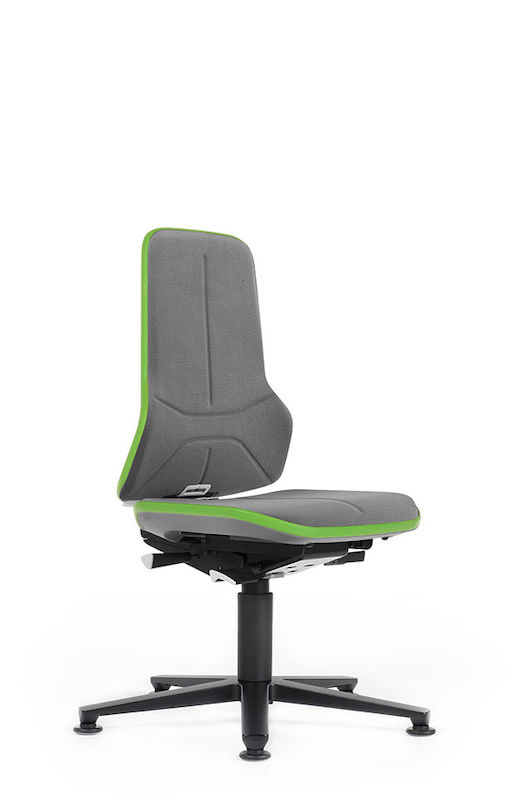 Synkromekanismilla ja ergonomiapaketilla varustettu teollisuustuoli. Kaasujousitoiminen korkeussäätö välillä 450–620 mm. Pyörillä varustettu alumiininen jalkaristikko, musta. Jalan halkaisija 700 mm. Istuinosan kaltevuuden säätö 0°–+9°.