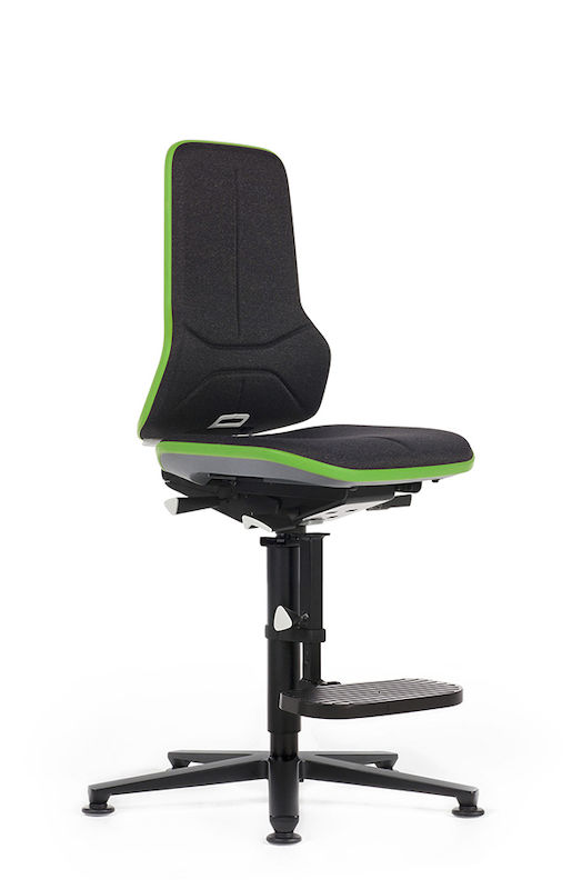 Pysyvä yhteys -mekanismilla ja ergonomiapaketilla varustettu teollisuustuoli. Kaasujousitoiminen korkeussäätö välillä 590–870 mm. Liukujaloilla ja jalkatuella varustettu alumiininen jalkaristikko, musta. Jalan halkaisija 700 mm. Istuinosan kaltevuuden säätö 0°–+9°.