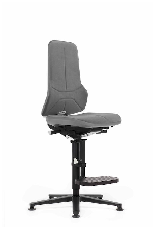 Pysyvä yhteys -mekanismilla ja ergonomiapaketilla varustettu teollisuustuoli. Kaasujousitoiminen korkeussäätö välillä 590–870 mm. Liukujaloilla ja jalkatuella varustettu alumiininen jalkaristikko, musta. Jalan halkaisija 700 mm. Istuinosan kaltevuuden säätö 0°–+9°.