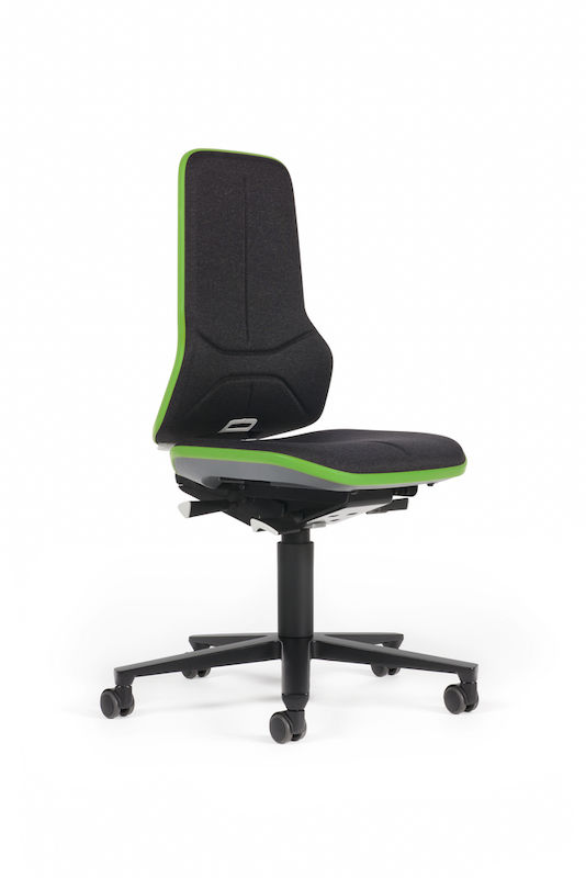 Pysyvä yhteys -mekanismilla ja ergonomiapaketilla varustettu teollisuustuoli. Kaasujousitoiminen korkeussäätö välillä 450–620 mm. Pyörillä varustettu alumiininen jalkaristikko, musta. Jalan halkaisija 700 mm. Istuinosan kaltevuuden säätö 0°–+9°.