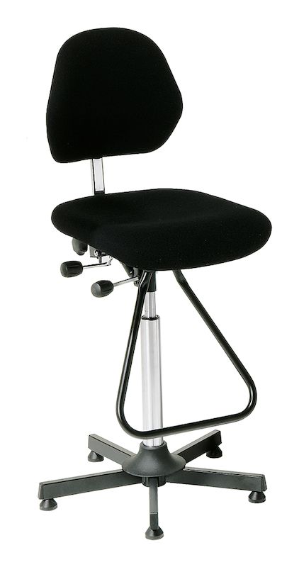 Työtuoli, jossa musta kangasverhoilu. Korkeussäädettävää selkänojaa voidaan kallistaa 16° eteenpäin ja 6° taaksepäin. Istuinosaa voidaan kallistaa 11° eteenpäin ja 3° taaksepäin.