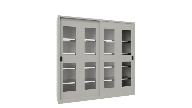 Liukuovilla varustetun teräskaapin sisällä korkeussäädettävien, sinkittyjen hyllyjen kantavuus on 80 kg hyllyä kohden. Hyllyt voidaan mukauttaa joustavasti erilaisiin varastointitarpeisiin, ja ne kestävät vaivatta raskaatkin kuormat. Lisäksi sinkitty pinta parantaa korroosion ja mekaanisen rasituksen kestävyyttä.