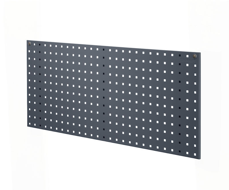 Reikälevy Ebba, pituus 1029 mm, antrasiitinharmaa. Tukevat, jauhemaalatut teräspeltilevyt, joissa neliörei’itys (9,2 x 9,2 mm). Yhdenmukainen 38,1 mm:n reikäväli mahdollistaa työkalunpitimien sijoittamisen vapaasti myös levysaumojen yli.