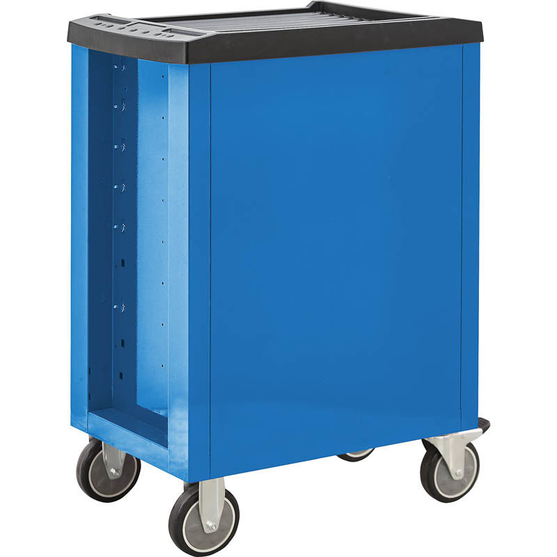 Työkaluvaunu Kebne, sis. 145 työkalua, LxSxK 708x459x977 mm, sininen. Sisältää myös työkalut ja koostuu tukevasta, jauhemaalatusta teräsrakenteesta yhteensä kuudella ulosvetolaatikolla. Työkalut ovat asetettu kolmeen ylimpään laatikkoon.