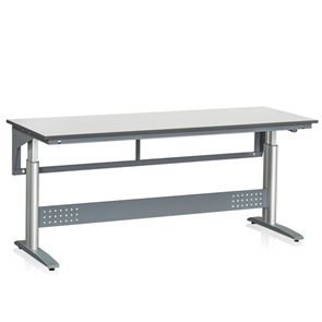 Teollisuuspöytä Vala, sähkösäädettävä, 1200x800 mm, pöytälevy harmaa laminaatti. Nostojalat ovat valmistettu alumiinista ja jalusta on jauhemaalattua terästä. Pöytälevyn kulmat ovat pyöristetyt ja viistetyt reunat ovat reunustettu ABS-muovilla. Sähkösäädettävä napin painalluksella välillä 690-1180 mm. Toimitukseen kuuluu päällysrakennerunko.