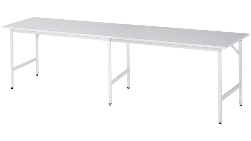 Työpenkki Rickard, runko 30 x 30 mm, melamiinipinnoitettu levy, LxS 3000 x 800 mm, vaaleanharmaa. Tukeva ja toimiva profiiliteräsputkista valmistettu alarakenne, jossa jalkaelementit, poikkipalkit ja jäykistyspalkit. Ympäristöystävällinen jauhemaalaus.