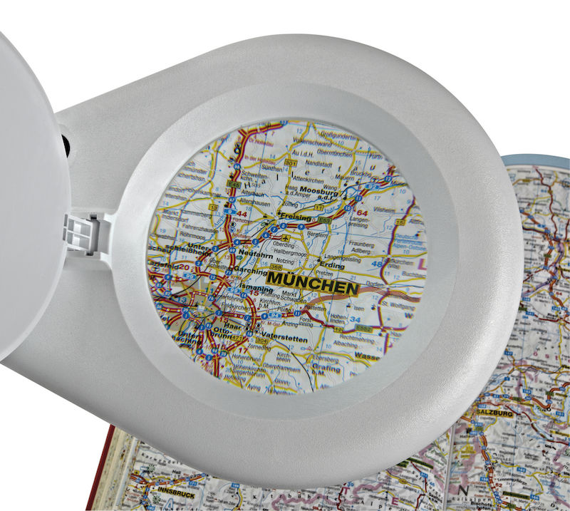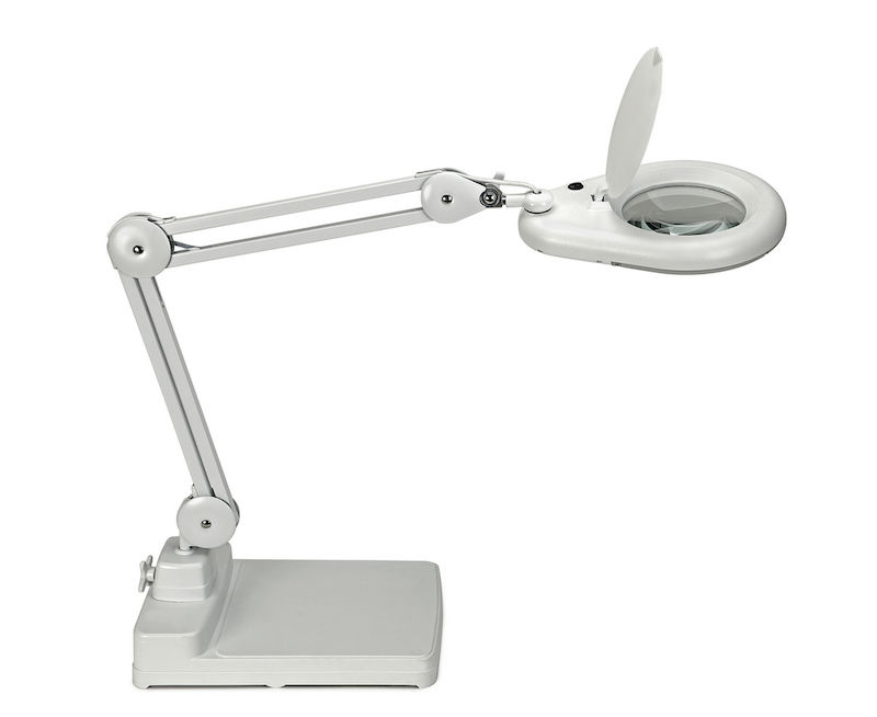 Suurennuslasivalaisin Vilda, varren pituus 310 mm, jalusta, valkoinen