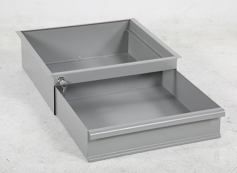 Täydennä työpöytäsi säilytyslaatikolla. Säilytyslaatikko kiinnitetään pöytälevyn alle.Ulosvedettävän laatikon korkeus: 100 mm