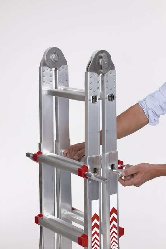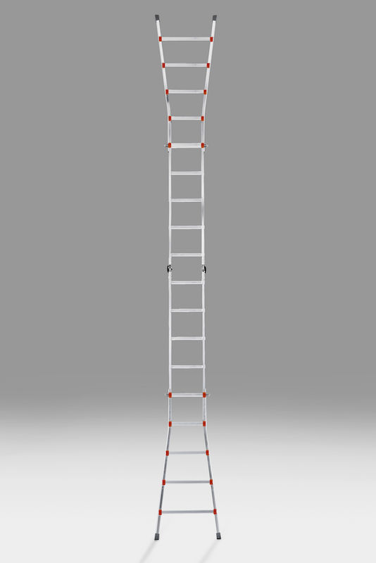 Yhdistelmätikkaat Tintin, A-tikkaat, nojatikkaat, teleskooppitikkaat ja askelmatikkaat samassa paketissa, 4 x 4 puolaa. Nämä laadukkaat, tukevat alumiiniset yhdistelmätikkaat takaavat maksimaalisen vakauden ja turvallisuuden kaikissa korkealla tehtävissä töissä. Niitä voidaan käyttää monipuolisesti A-tikkaina, nojatikkaina, teleskooppitikkaina ja askelmatikkaina. Tilaa säästävä rakenne kuljetettaessa ja säilytettäessä. Tikkaat voidaan jatkaa käyttötilanteen mukaan lähes nelinkertaiseen mittaan. Jatkaminen onnistuu kätevästi puola kerrallaan.