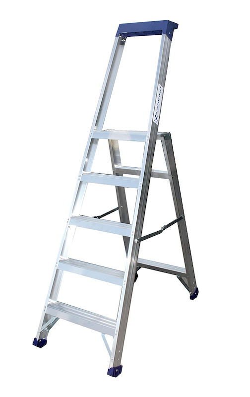 Rakennustikkaat Proffs 5050, työkaluhyllyllä, 5 askelmaa, ovat kestävät, ammattikäyttöön tarkoitetut Skeppshultstegen-tikkaat tukikaarella. 600 mm korkea tukikaari antaa hyvän tuen tikkaiden päällä seistessä ja työkaluhylly on käytännöllinen alusta, johon voi laskea työkalut siksi aikaa kun niitä ei tarvitse. Tikkaat ovat valmistettu alumiinista ja ne kestävät kovempiakin otteita. Hydraulisesti uritetut askelmat ovat erittäin pitävät. Tason mitat ovat 375x250 mm ja askelmien syvyys 81 mm. Tikkaiden jaloissa on lattiaa suojaavat muoviset päätysuojukset. Lattiasuojaukset estävät myös tikkaiden liukumisen.