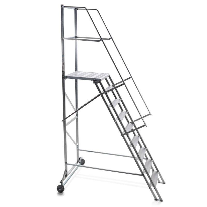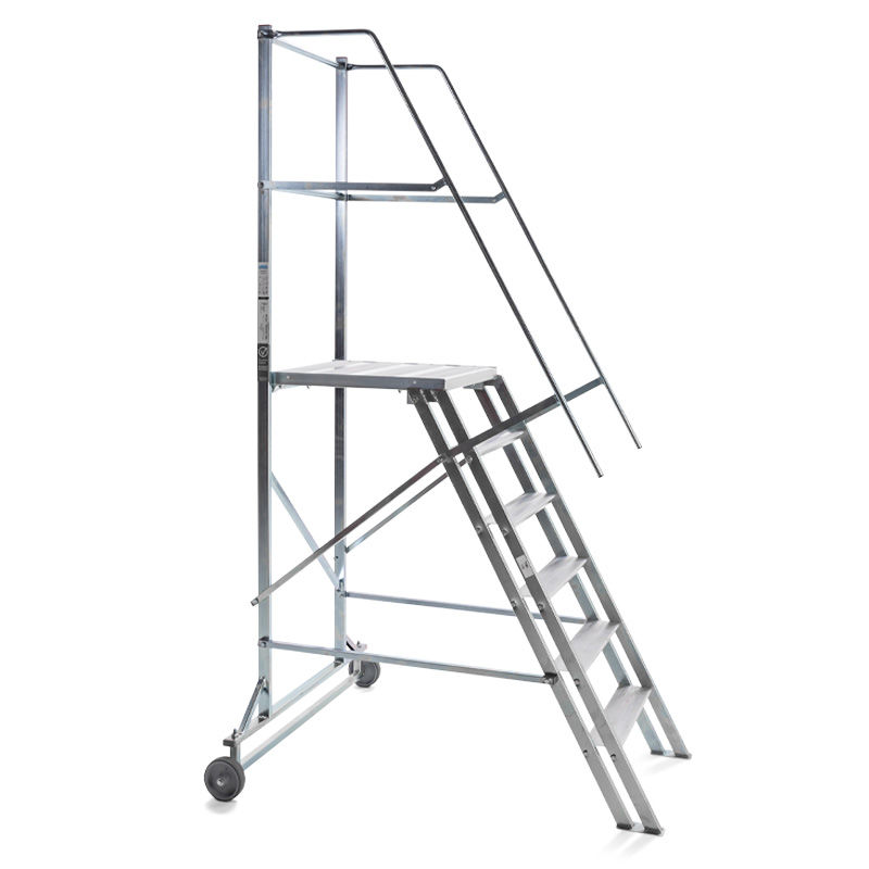 Varastotikkaat 6-15 askelmalla. Siirrettävät tikkaat, joissa askeleet luistamatonta rihlakuvioitua alumiinia. Kestävä rakenne sinkittyä terästä. Tikkaat ovat tukevat ja turvalliset tukikaarilla, sopivat esimerkkisi varastoihin tai teollisuuskäyttöön. Helpot koota ja purkaa, neljällä pultilla. Varastotikkaissa on 2 kiintopyörää, ilman jarruja, jotka mahdollistavat helpon siirtämien. Saatavilla eri kokoisina.