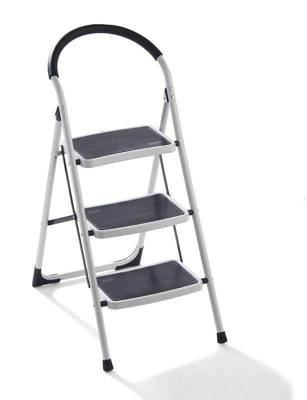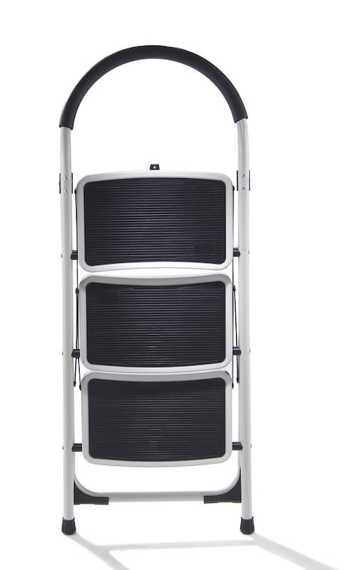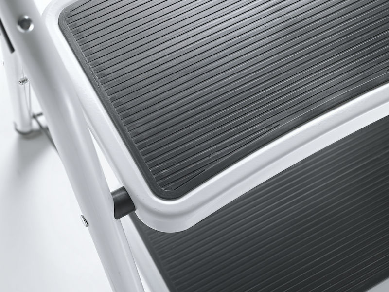 Tikasjakkara Stina, nostokyky 150 kg, 3 askelmaa. Tukeva teräsputkirakenne, jauhemaalattu, papyruksenvalkoinen.