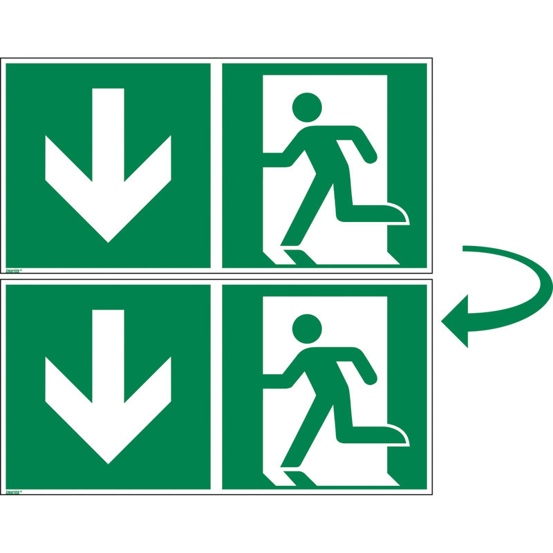 Hätäpoistumistie kyltti, jälkivalaiseva, kaksipuolinen, alas, 400x200 mm, muovi, 10-pakk. Käytännöllinen poistumistieopaste moneen käyttöön. Kyltit ovat valmistettu alumiinista tai muovista. Valmistus ISO 7010/ASR A3.3. mukaisesti. Sijoitetaan näkyvälle paikalle voimassa olevien säännösten mukaisesti. Saatavilla kaksi- ja yksipuoleisena. Opasteen luminanssi on 55 mcd/m2, 2 kertaa kirkkaampi kuin DIN-norm 67510 vaatimus. UV-suojattu. Voidaan käyttää sekä sisä- että ulkotiloissa. Loistaa pimeässä latauduttuaan päivänvalosta, LED-valosta tai toisesta valonlähteestä.