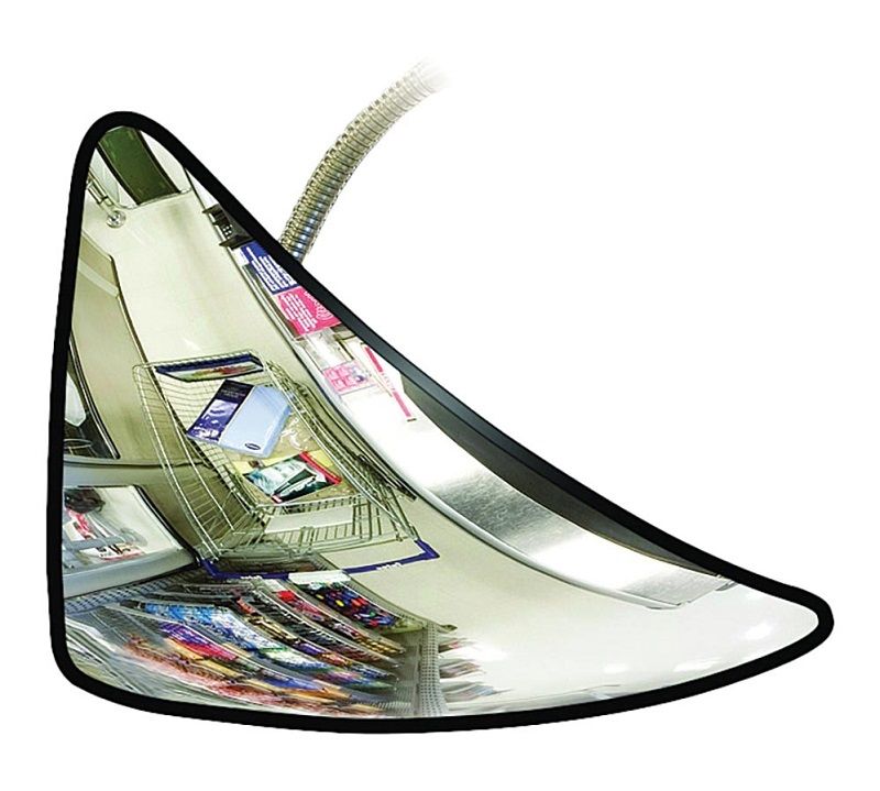 Valvontapeili myymälävalvontaan, laajakulma. Valvontapeili myymälään taivutettavalla varrella on valmistettu akryylista. Taivutettavan varren ansiosta peili sopii erinomaisesti myymälävalvontaan.