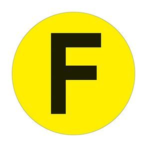 Lattiamerkintä PVC, Ø190 mm, 10kpl/pakk, kirjain F. Vahva itsekiinnittyvä taustapuoli. Sopii erinomaisesti käytettäväksi käytävillä ja muualla varastotiloissa. Hyvä näkyvyys. Muotoiltu kestämään kulutusta moderneissa varastoissa. Kiinnitetään lattialle tai muille sileille ja puhtaille pinnoille. Lattiamerkintöjen halkaisija on 190 mm mustalla tekstillä keltaista pohjaa vasten. Tilattavissa kirjaimilla A-Z. Toimitetaan 10 kappaleen pakkauksissa.