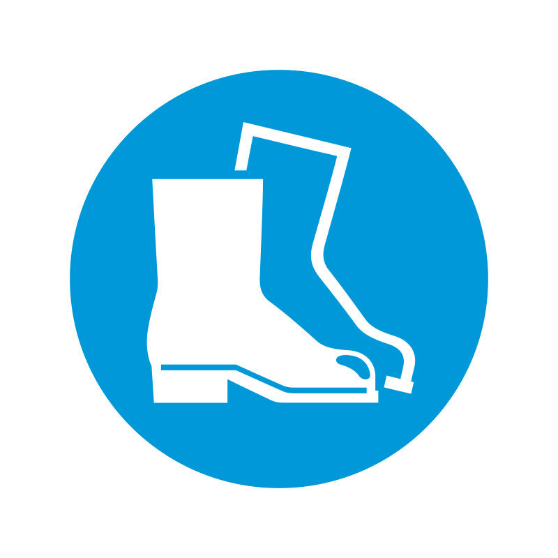 Lattiamerkintä PVC, ohjekilpi, käytettävä turvakenkiä, Ø 430 mm, 2 kpl/pakkaus. Selkeä lattiamerkintä kuvakkeilla. Itsekiinnittyvät opasteet lattiaan ja seinälle. Kiinnittyvät kaikille puhtaille, sileille ja tiheille pinnoille. Kulutuksenkestävät PVC-opasteet, jotka kestävät myös trukkiliikennettä. Kuva on painettu läpinäkyvän suojan sisäpuolelle. 2 lattiamerkintätarraa per pakkaus. Saatavilla useita eri kuvia.