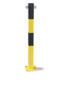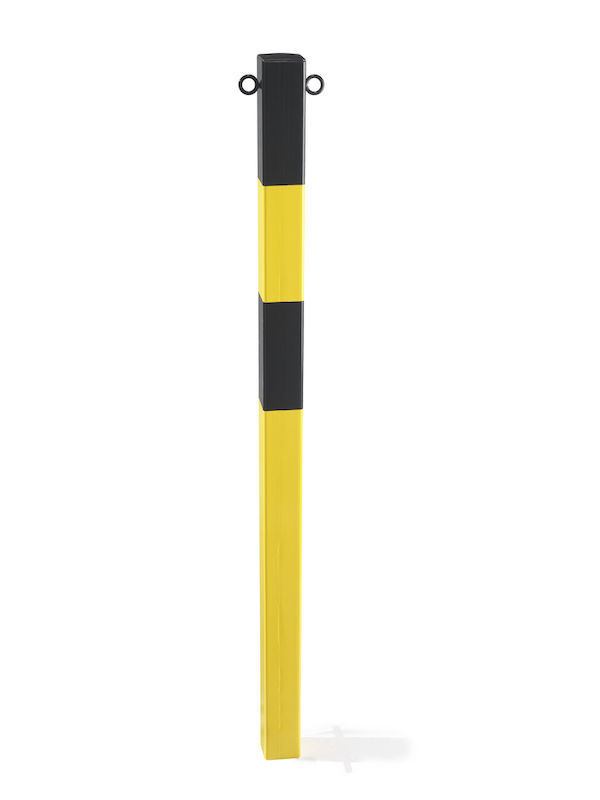 Rajaustolppa Jakob, betoniin valettavaksi, 70 x 70 mm, keltainen/musta, sinkitty ja maalattu. Tolppa, jossa 2 silmukkaa.