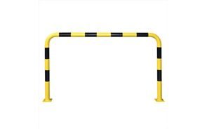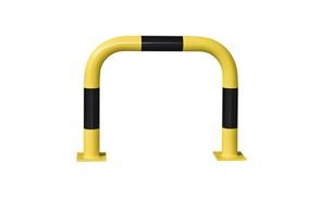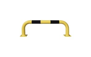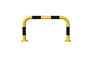 Törmäyssuoja kaari, LxK 1000x600 mm, ulkokäyttöön. Tukeva, teräksestä valmistettu törmäyssuoja, kaari Ø 76 mm, materiaalipaksuus 3 mm. Tasainen kaari, ei saumoja. 3 korkeutta, 350, 600, 1200 ja 3 leveyttä 375, 750, ja 1000 mm. Aluslevyllä (160x140x10 mm), pultataan kiinni.