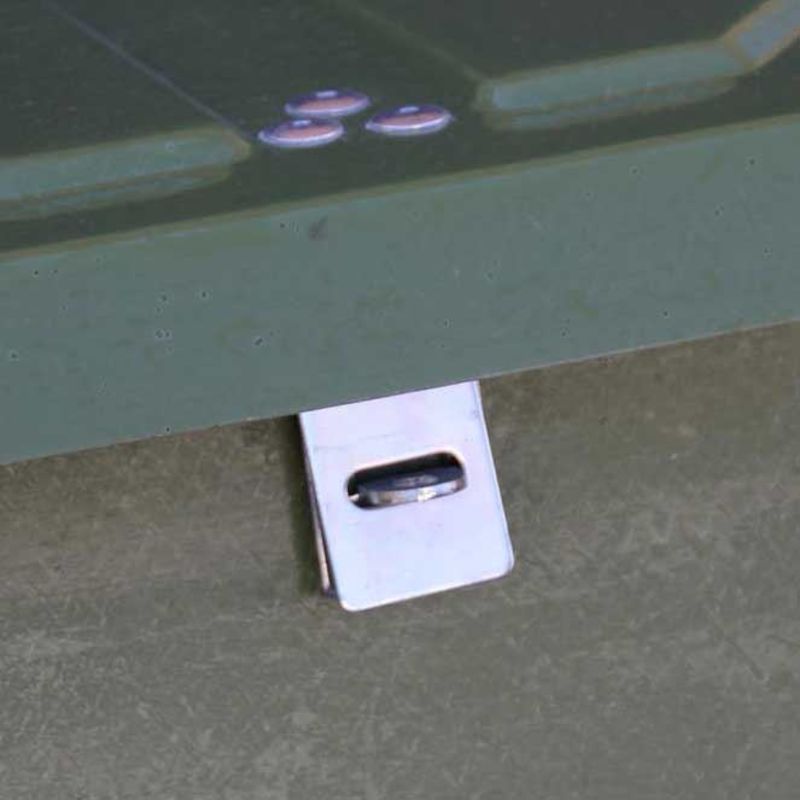 Riippulukkosovitus hiekoituslaatikolle Kiruna. Valmistettu teräksestä.