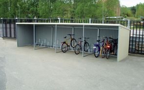 Katos valmistetaan 5 pyöräpaikan osissa, ja se on laajennettavissa 10, 15, 20 jne. paikan katokseksi. Lukittavat ovet saatavilla lisähintaan.