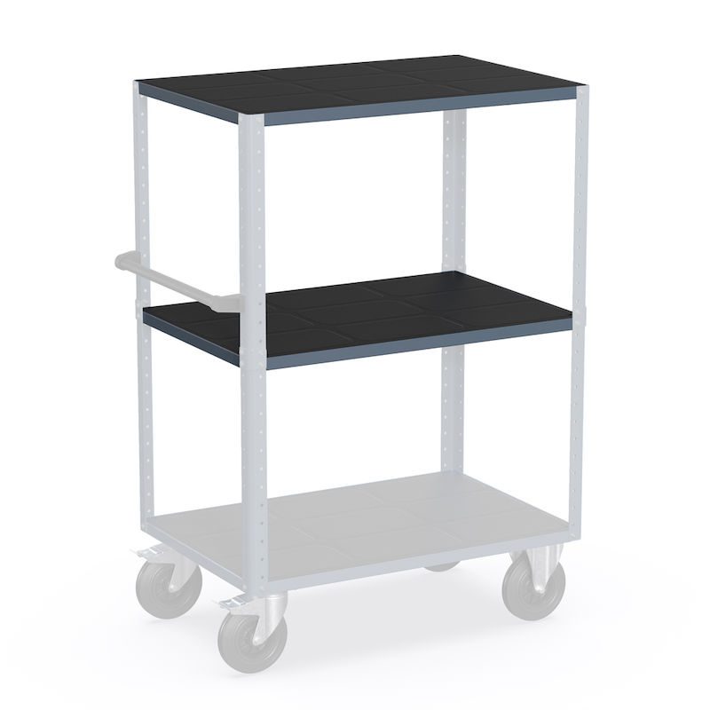 Hyllytaso CustomLine, taso- ja hyllyvaunuun, antrasiitinharmaa. CustomLine-sarjan hylly- ja tasovaunuun kuuluva lisätaso mahdollistaa vaunun yksilöllisen kokoonpanon yksittäisosien avulla. Hyllytasojen lukumäärää voidaan lisätä lisätasoilla. Muoviset kuormatasot pitävät osat tukevasti paikoillaan. Ergonominen työskentelykorkeus helpottaa isojen ja raskaiden esineiden käsittelyä. Voit lisätä monikäyttöisyyttä myös muuttamalla tasovaunun hyllyvaunuksi. Vaunun mukautettavuuden mahdollistaa sen modulaarinen rakenne. Reikäprofiilien avulla kuormatasot on helppo asettaa halutulle korkeudelle käsiteltävien osien mukaan. Voit muuttaa vaunun korkeutta yhdistelemällä eripituisia kulmapylväitä. Vaihtoehtona yksittäisosille saatavilla on myös valmiiksi koottuja erikokoisia taso- ja hyllyvaunumalleja. Kaksi väriä.